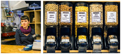 ![]() A la izquierda, Marta en la caja de su tienda INGREDIENTS. A la derecha algunos de los productos ecológicos que vende. BLANCA APARISI GALÁN |